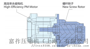 高效永磁电机和螺杆外转子采用内置一体式轴直接连通结构,传动效率为100%,无变速箱,无皮带,无传动效率损失,比之越来越节能。